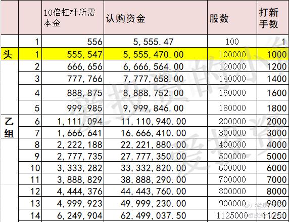 乙头需要认购资金556万,乙组的各档融资所需要的本金还有融资金额对应如下表: