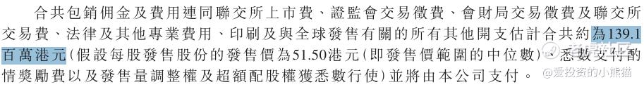 然后这个票招股书上按发售价的中位数51.50港元计算,公开的上市所有开支总额约为1.39亿港元,募资额约11.59亿港元,占比约12%,开支相比募资额算是一般化了。