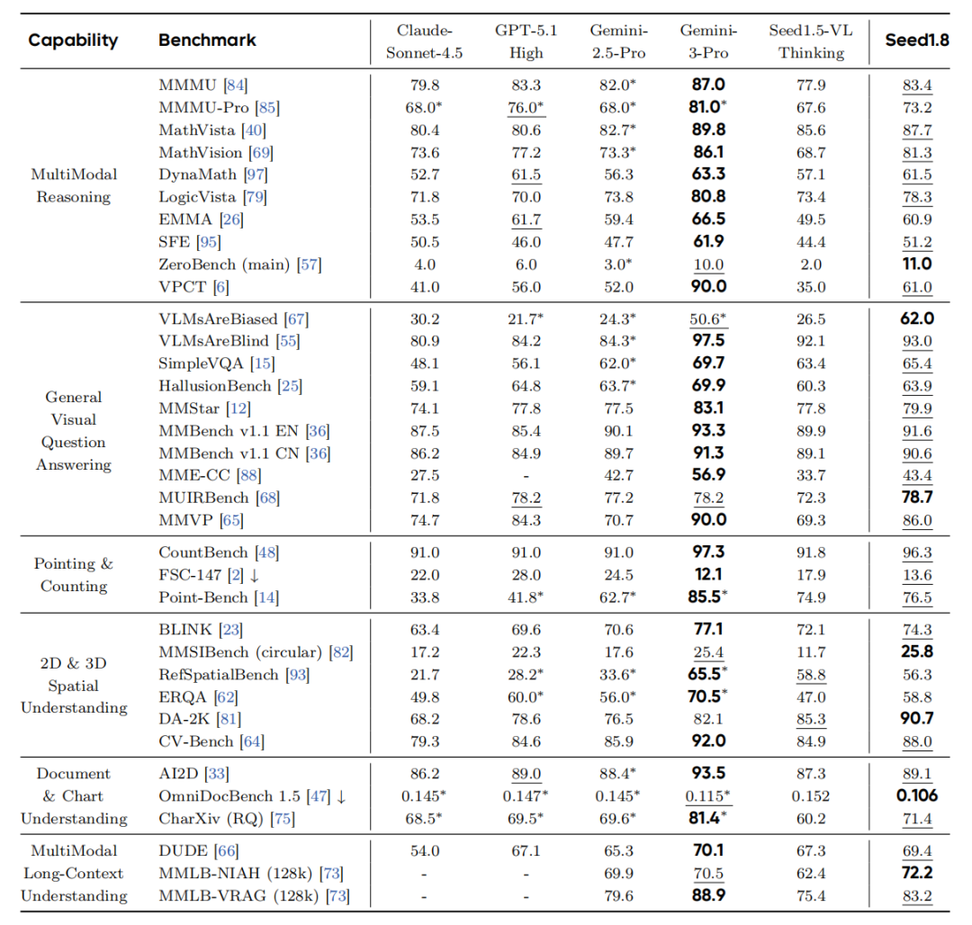 而恰好我也看到了字节刚发的“豆包大模型1.8”的技术报告,发现其一个亮点也是视觉理解和推理。