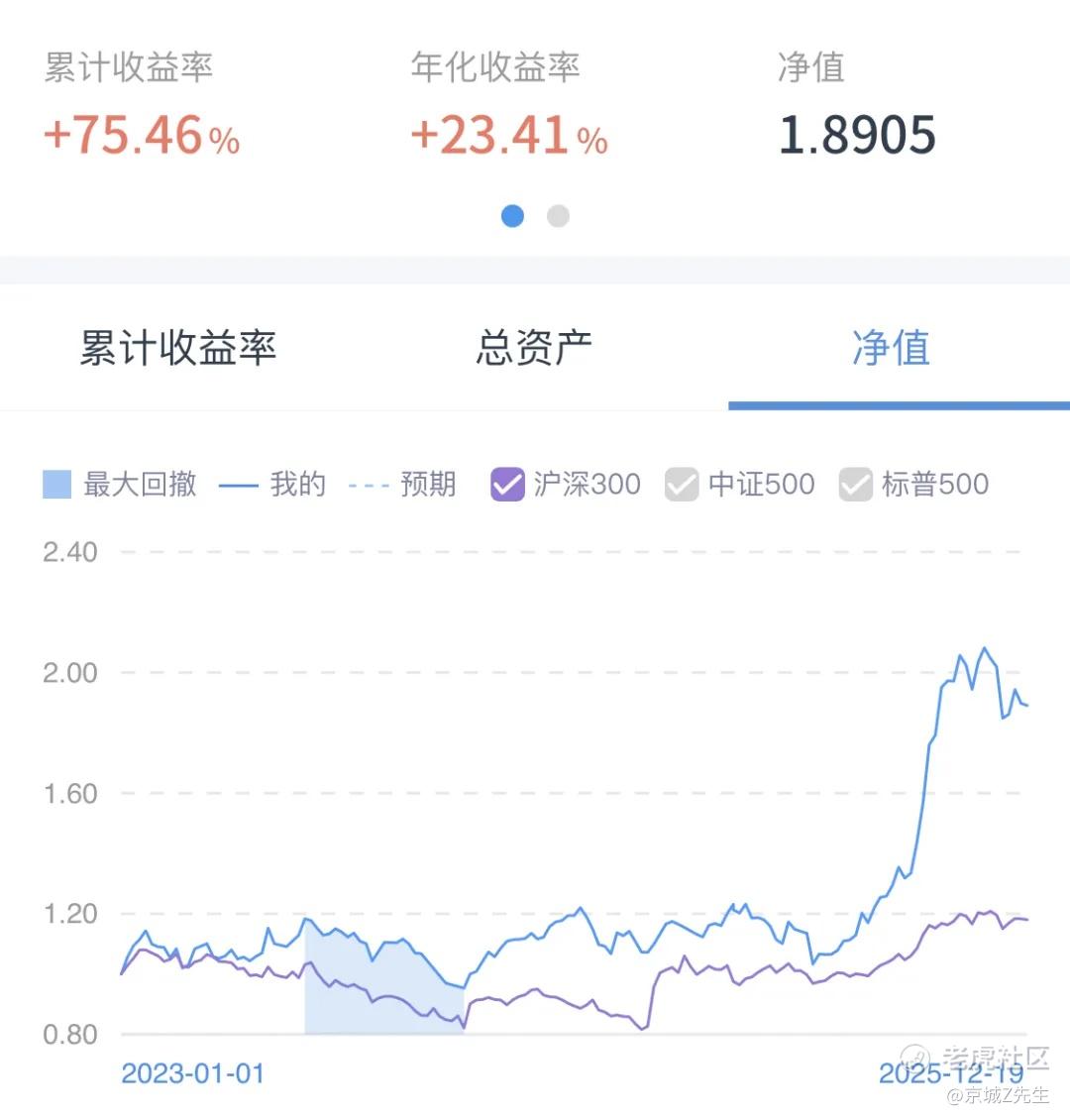 2025 年内沪深 300 指数 上涨 16.09%,2025 年内我的实盘 上涨 57.44%,本年初始净值1.20,本周净值1.89。