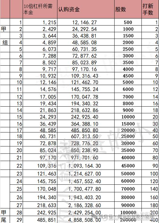 甲组的各档融资所需要的本金还有融资金额对应如下表:
