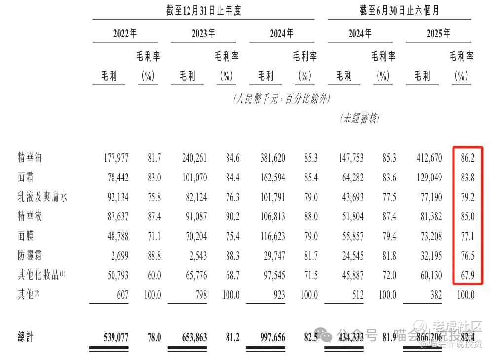 大部分品类毛利率都很高,精华油更是高达85%+,2025年上半年收入占比增长最多的,就是这一品类,好评!