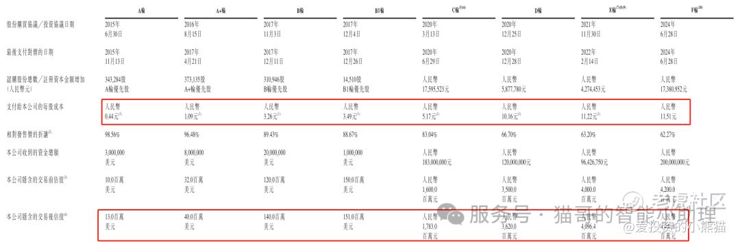 - A+轮(2016年8月15日):每股成本为人民币1.09元,相对发售价折让96.48%,投后估值为4000万美元,认购了373,135股A+轮优先股。