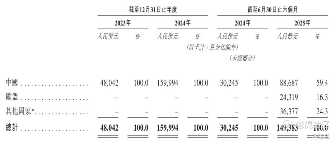 精锋医疗2025年上半年中国收入为8869万元,占比为59.4%;来自欧盟的收入2432万,占比为16.3%;来自其他国家收入为3638万,占比24.3%。