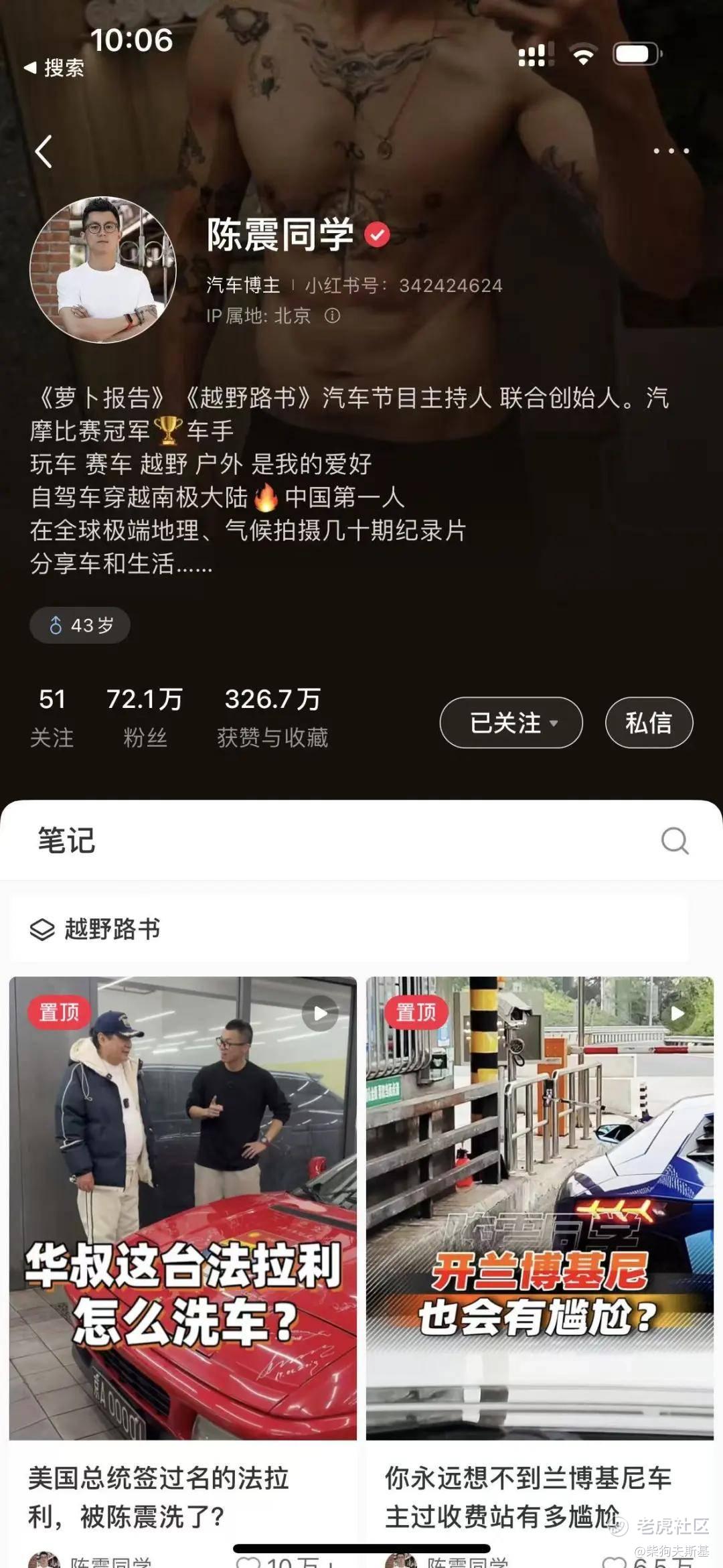 比如在小红书平台,陈震账号目前显示正常,并且能正常关注……