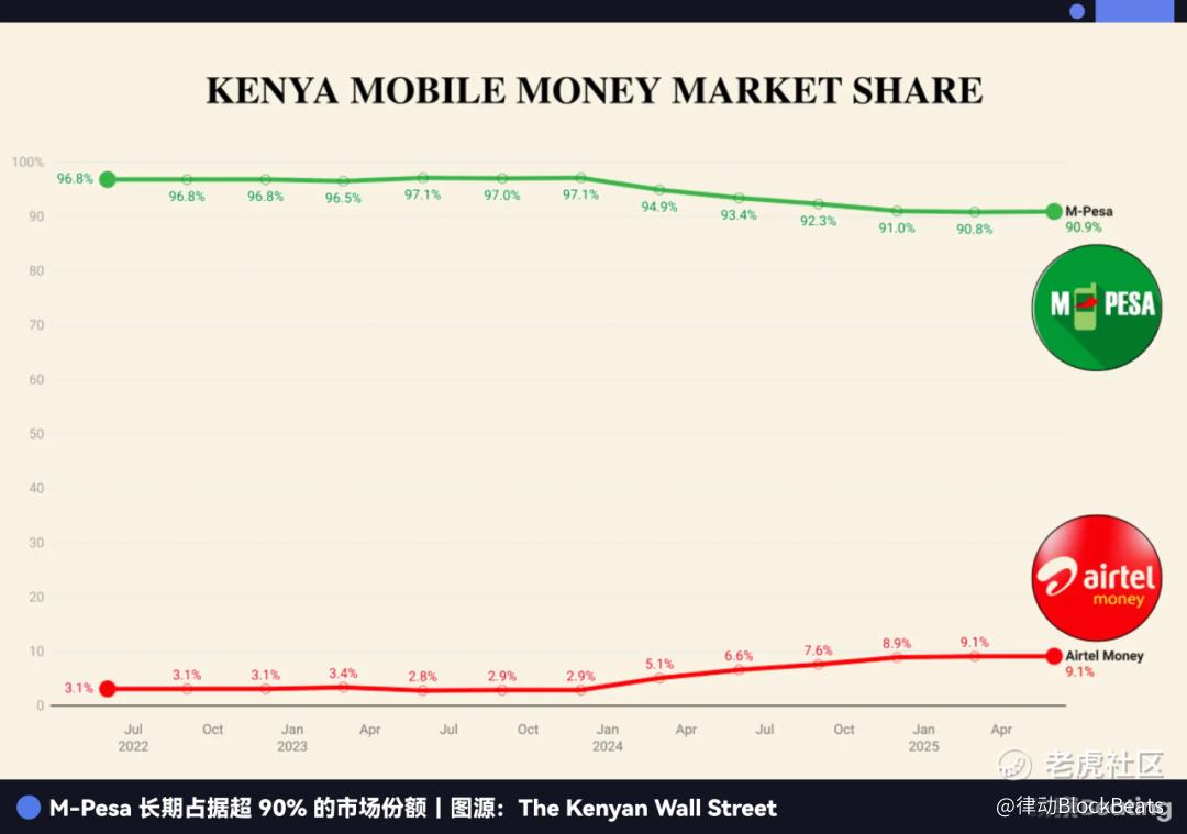 在这里,M-Pesa 不需要面对任何行政封杀。它占据了 90% 的市场份额,肯尼亚 GDP 的近 60% 都在这个网络中流转。它不仅是支付工具,更是这个国家金融系统的水电煤。