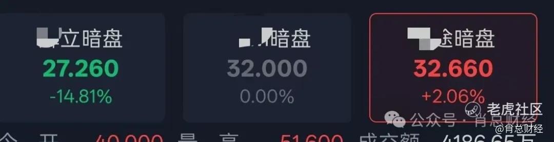 某立的收盘价为-14.81%,某途整个暗盘都在水面上,收盘价为2.06%。