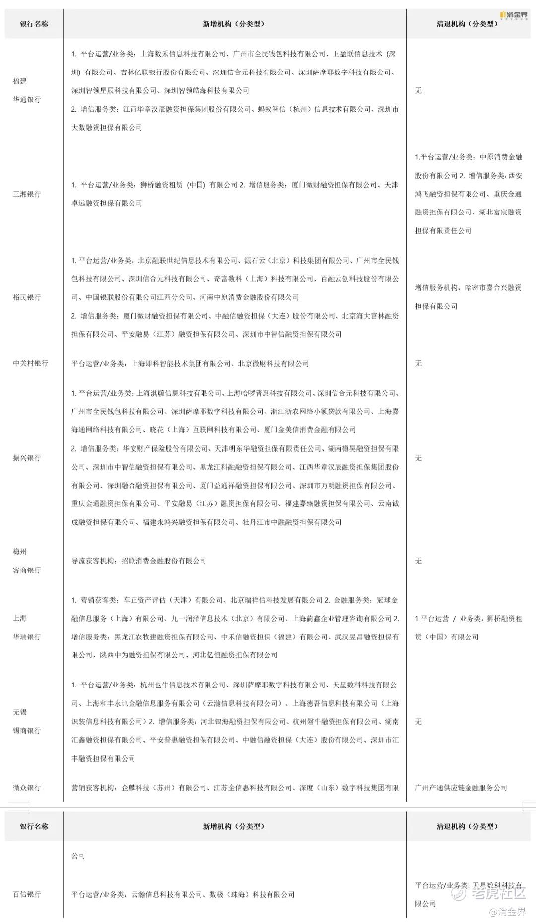 其中,华通、振兴、裕民等新增大量场景/流量平台,同时集中新增融资担保公司,部分叠加保险公司,强化信贷风控与合规增信。而民营银行的跨业态合作增多,比如华瑞银行合作冠球金融信息服务(上海)、九一润泽信息技术(北京)等。