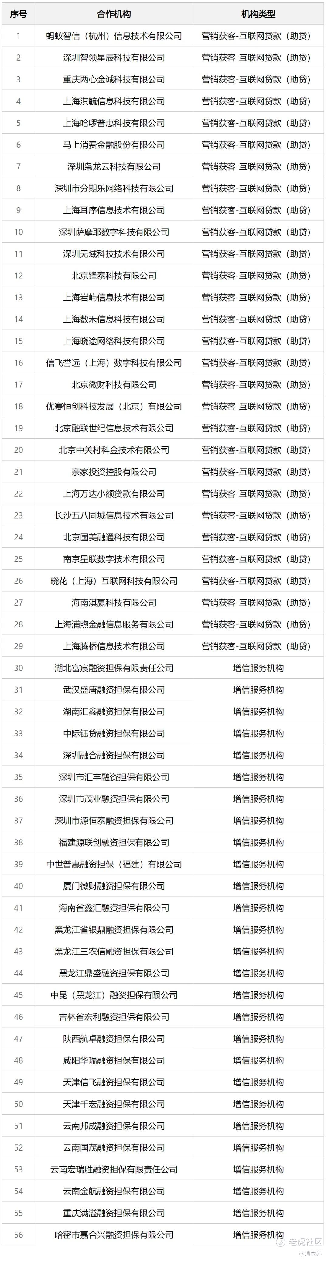 从名单上看,头部科技与持牌消金主导着互联网金融生态。其中蚂蚁、度小满、奇富等成为10家以上银行共同选择,覆盖获客、风控全链路;此外,招联、马上、金美信消费金融等合作超8家银行,兼具流量与合规属性。