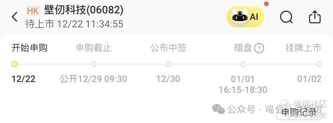 Tiger终于把六股齐发的公布中签/资金解冻日改到正常的12月24日了,壁仞科技申购截止是12月29日,虽然中间隔着都是圣诞节假日,你就当是次日好了,是赶得上的。