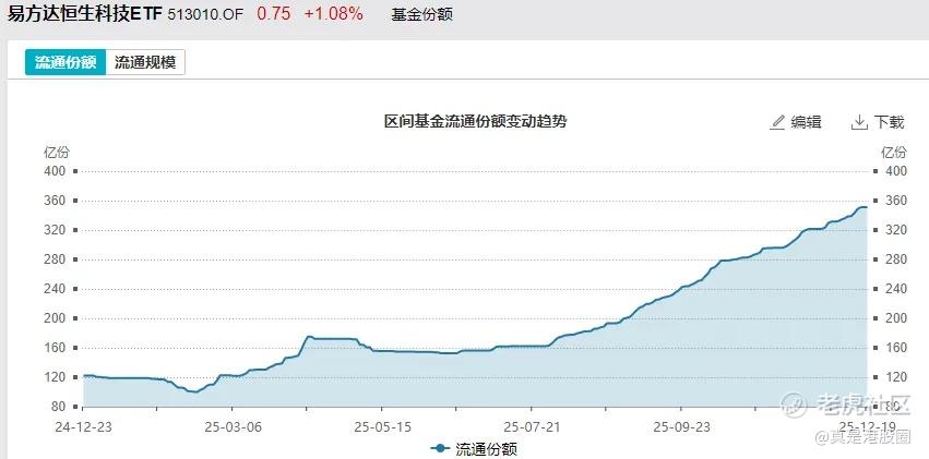 所以,买恒生科技是最简单直接的选择,可以关注恒生科技ETF易方达(513010),最近的回调里,基金份额呈现出持续增加的趋势,说明不少市场资金还是在趁机布局的。