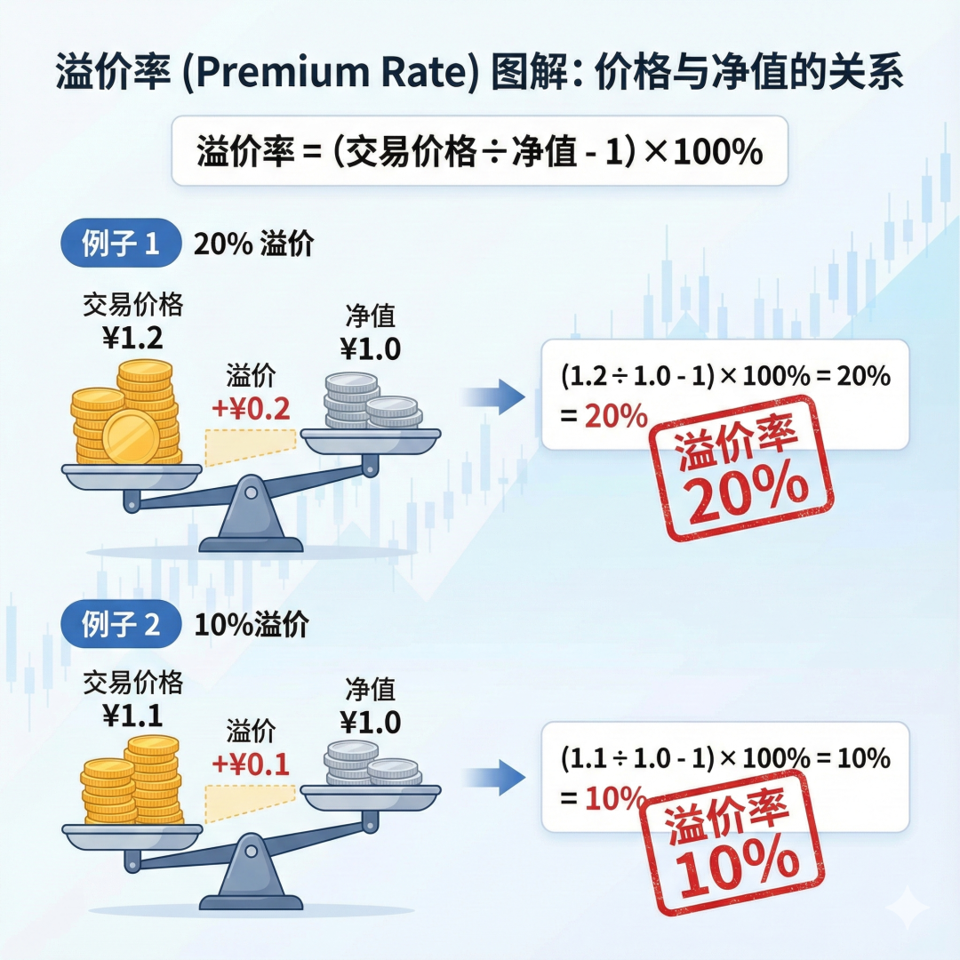 溢价率 = (交易价格 ÷ 净值 - 1)× 100%