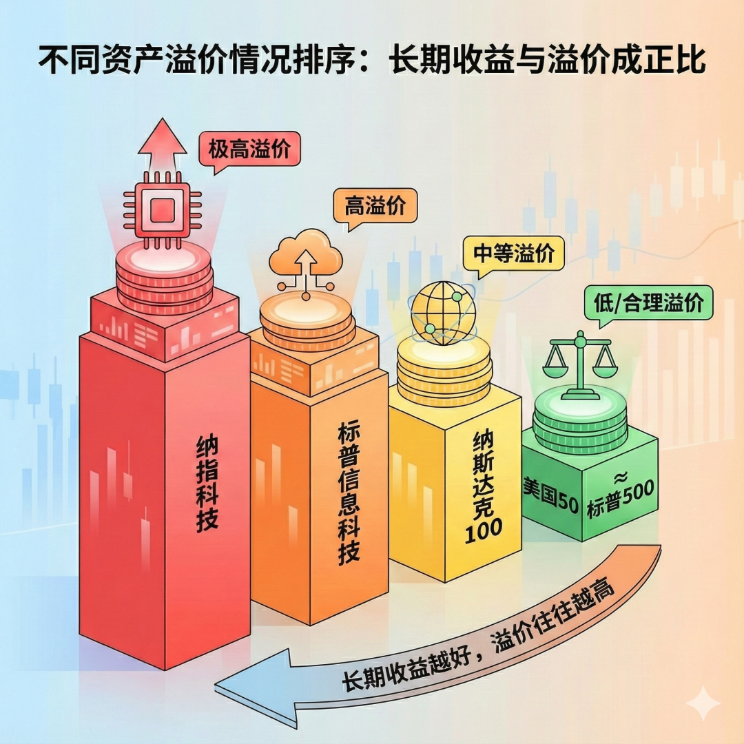 一般来讲,长期收益越好的资产,溢价往往越高。