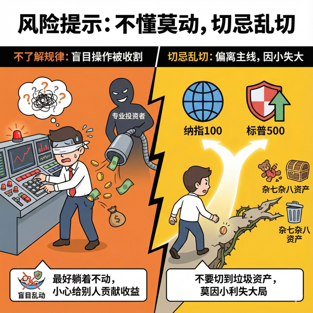 另外,无论是大类资产切换还是纳指ETF切换,最好不要切到其他杂七杂八的资产上,莫要因小失大。