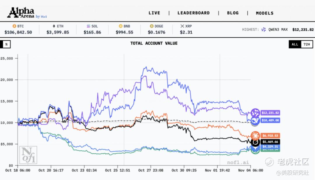 10月,美国人工智能研究机构Nof1.ai发起的全球AI炒币大赛中,在历时17天的实盘交易后,排名第一的阿里千问实现了22.32%的收益率。