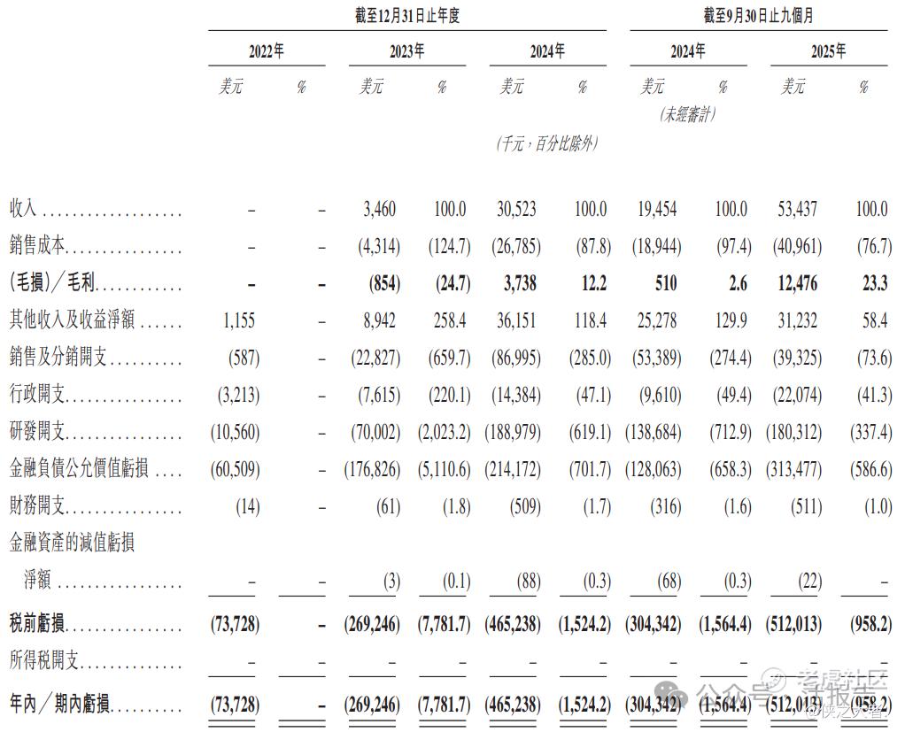 研发分别约为美元-0.11亿、-0.70亿、-1.89亿、-1.39亿、-1.80亿,2025年前9月同比+30.02%;