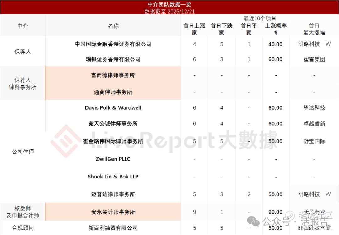 据**大数据统计,MiniMax中介团队共计12家,其中保荐人2家,近10家保荐项目数据表现有待提升;公司律师共计6家,综合项目数据表现有待加强。整体而言中介团队历史数据表现有待提升。