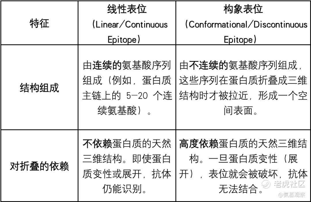 * 线性表位与构象表位的比较: