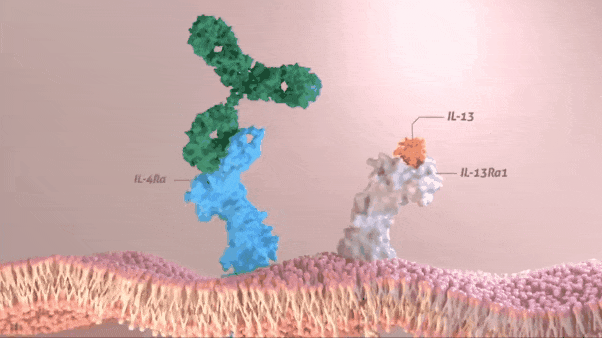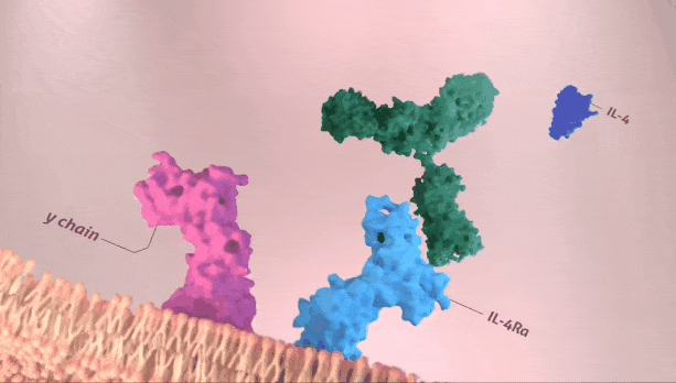 这一看似"大胆"的决策实则是源于科研人员经过长达数十年的免疫学基础研究提出的一个统一科学假设:许多过敏性和特应性疾病是由过量的白细胞介素-4(IL-4)和白细胞介素-13(IL-13)驱动的,这两种细胞因子在2型炎症反应中扮演着核心角色——意味着,找到抑制2型炎症的"关键钥匙"或许就能破解一类与之相关的疾病。(这一假设在后来的临床研究中被反复验证)