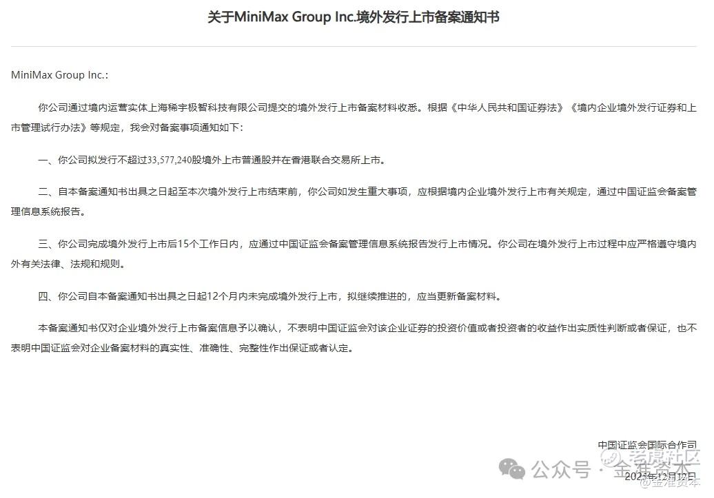 中国证监会再通过2家企业境外上市备案|智谱华章和MiniMax