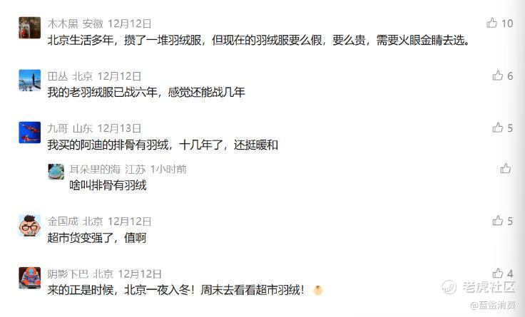 话题下的评论不少人回复道,我也有一件穿了好多年的羽绒服。