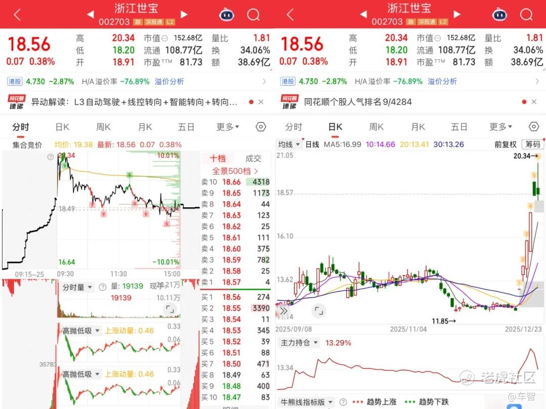 浙江世宝再涨停但发套了,海汽集团接棒L3三连板,众泰辟谣段永平牵头OV合作