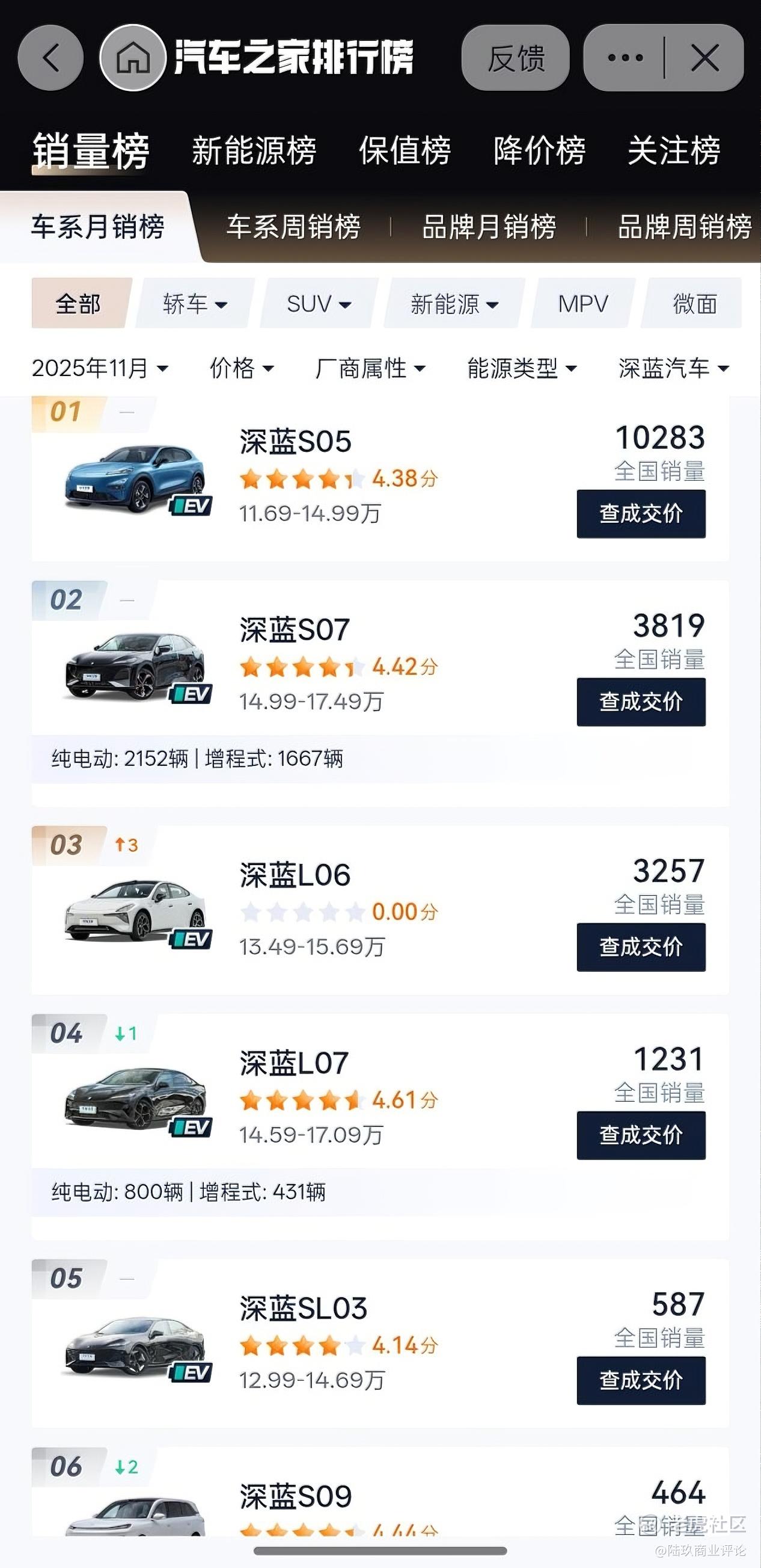 倘若就商业效果而言,行业中定价在10万-15万的车型,有的用户本身对智驾方案需求以及为之付费的考虑有限,所以对于深蓝来说,旗下更为高端一点的深蓝S09的销量又还不够规模,虽然另外一个可以放大供给的深蓝L06,在上市1小时订单就突破20000辆,交付上还需要看后续订单实际转化情况。