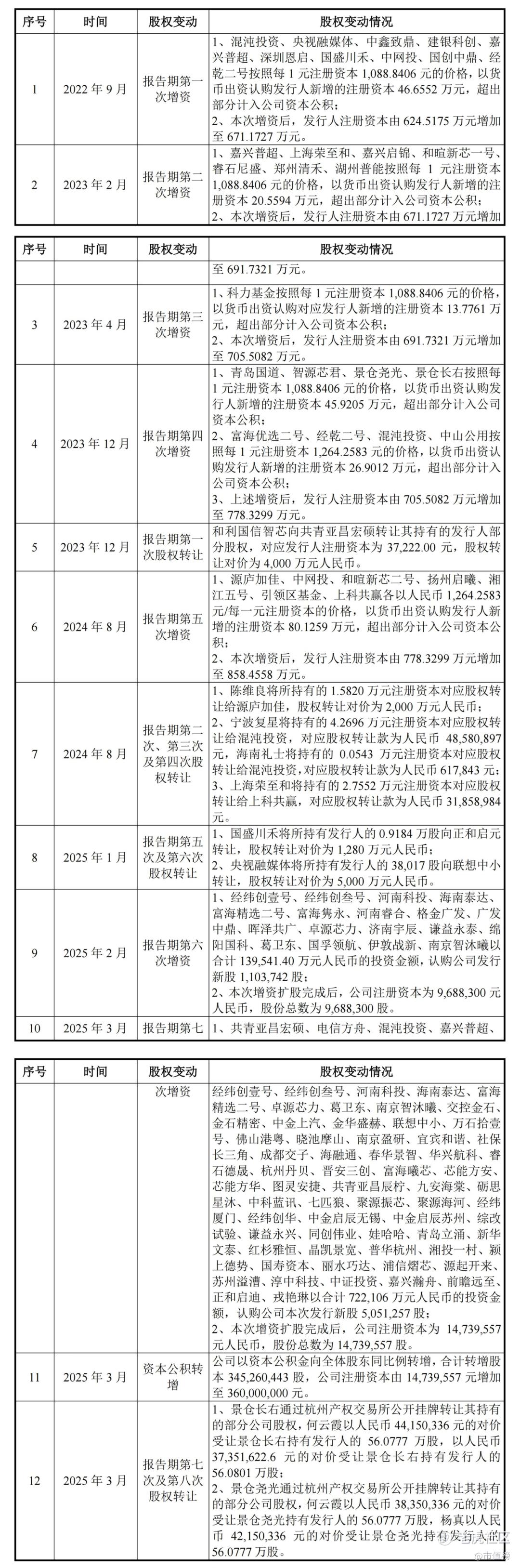 2025年2月和2025年3月,沐曦股份进行了第六轮和第七轮增资。由于在第五轮增资之后,沐曦股份完成了从有限责任公司到股份有限公司的股改,股改后股东持股数量与其注册资本实现1:1对应。因此第六轮和第七轮增资是沐曦股份在上市前的最后两次融资。