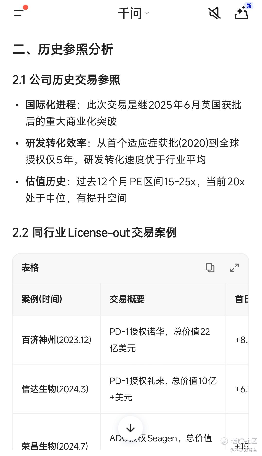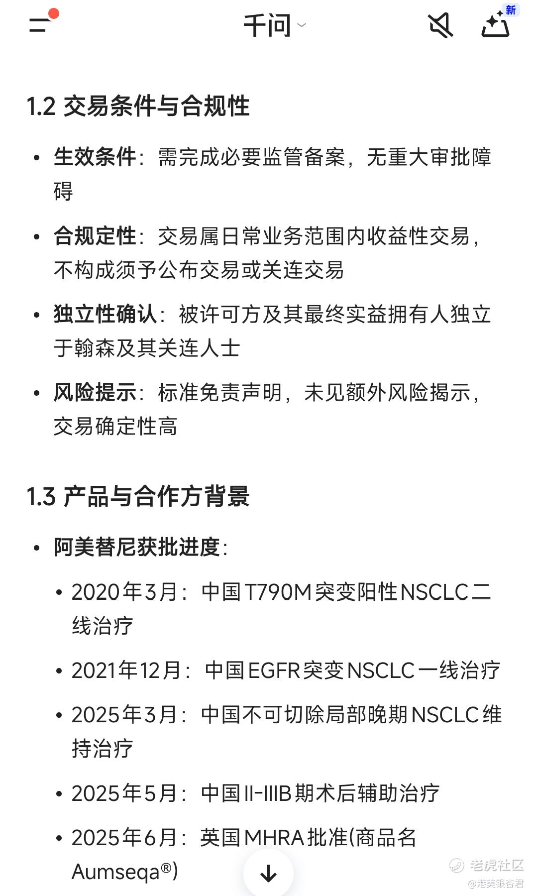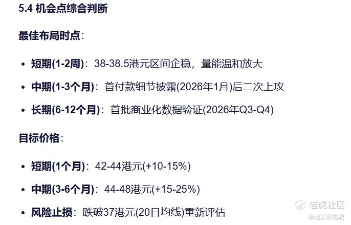 这个实际上,很多球友也有提到过,说明AI是整合了大家的分析,最后进行了有效的总结,同时还特别指出,因为交易细节未明,短期业绩贡献有限,但是这次翰森制药license-out模式价值被低估,如果首付款+里程碑进一步明确的话,将显著改善2026—2027年现金流,38港元附近是中长期价值布局良机。