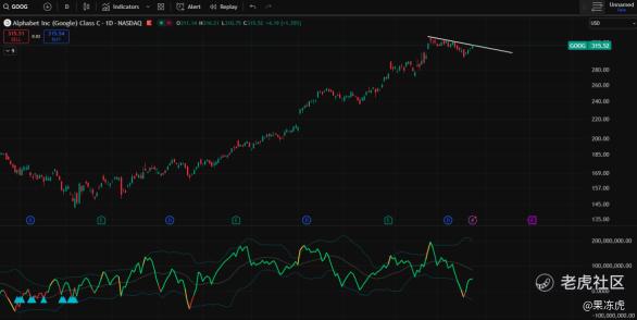 MSFT:颈线495不说了。谷歌有点意思哦,再向上趋势要变了。