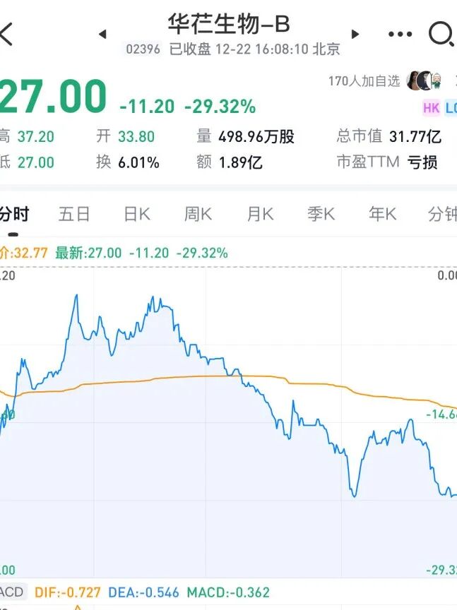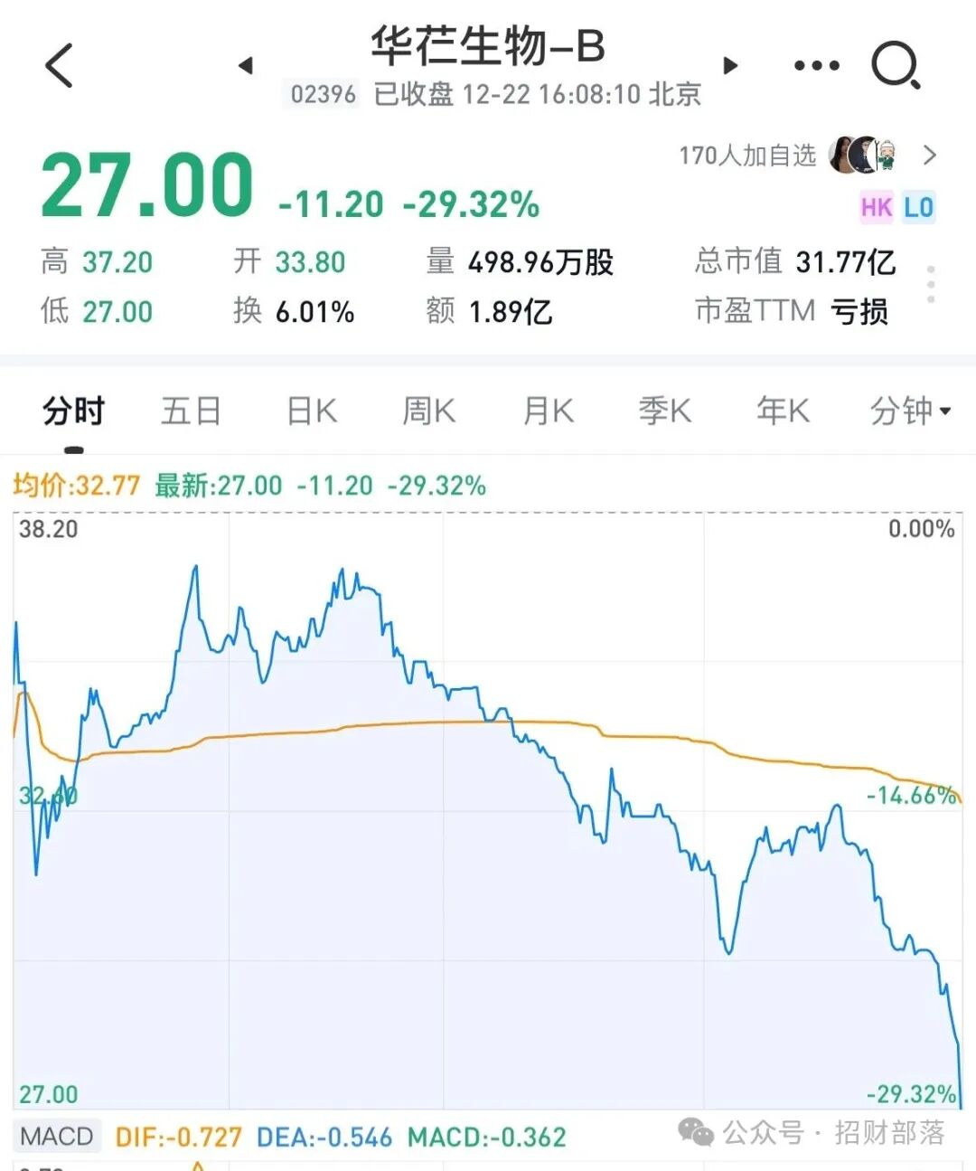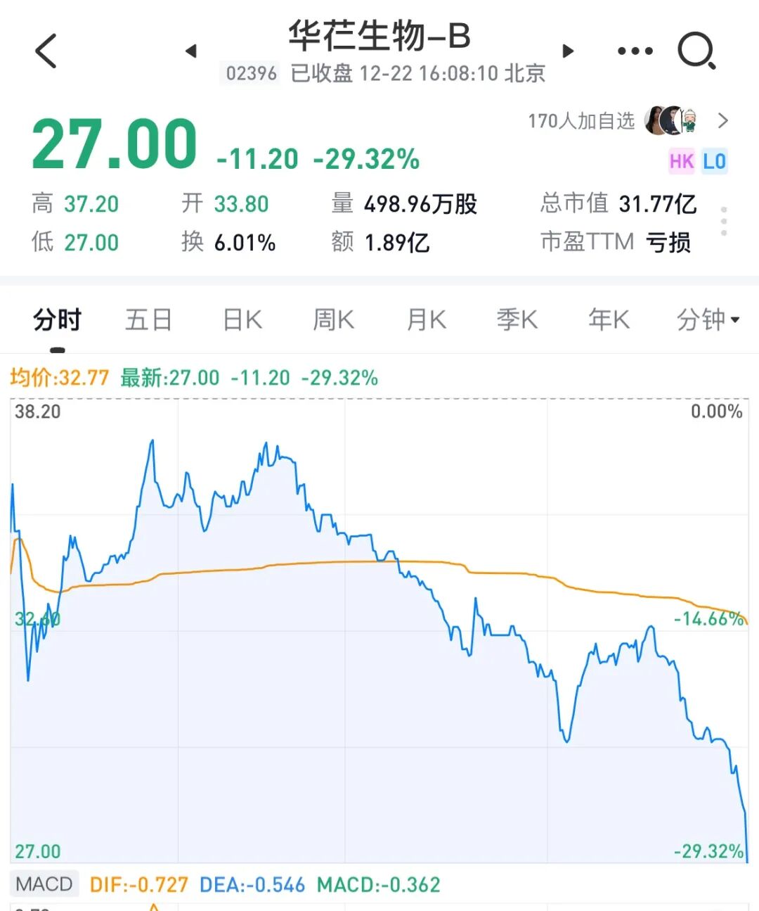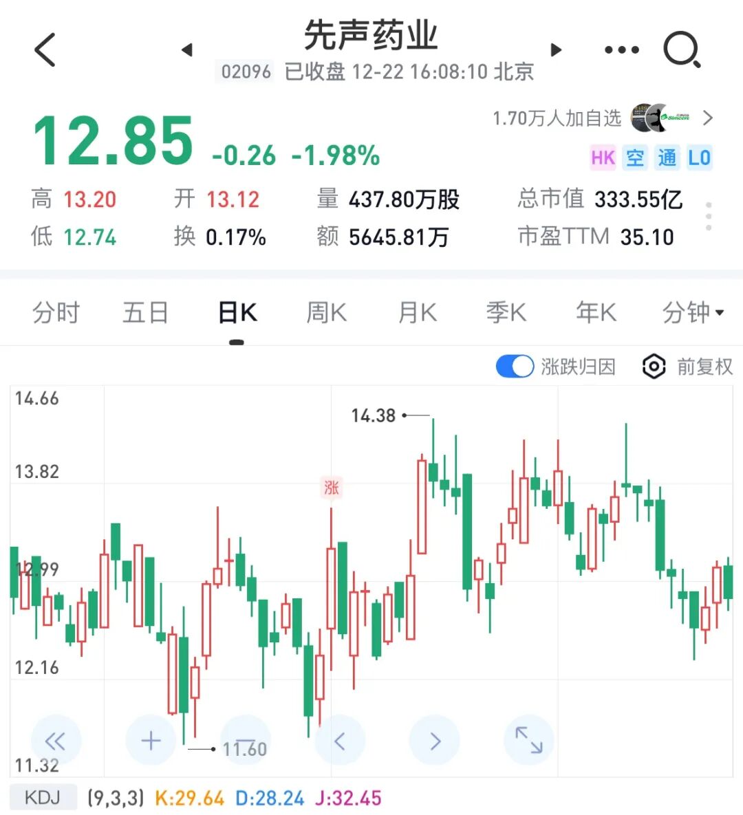 1、华荏生物IPO首日暴跌,这大概是最惨的港股18A新股了吧 港交所今年发了114只新股,融资2863亿港元,融资规模全球第一,到了年底韭菜终于还是扛不住了。同样下跌的还有今天IPO的其他三只,明基医院跌49%、印象大红袍跌35%、南华期货股份跌24%。 2、加科思大跌14%,1亿美元首付款,20.15亿美元总交易金额 还处于临床1期的JAB-23E73为一款pan-KRAS之抑制剂除中国外的全球权益授权给阿斯利康,首付款拿到1亿美元却支棱不起股价。 3、先声药业跌2%,4500万美元首付款,10.6亿美元交易总金额 先声药业的靶向LRRC15的抗体药物偶联物(“ADC”)SIM0613在大中华区以外地区的全球权利授权给益普生Ipsen,BD利好出也遭遇了收跌命运。 4、荃信生物微涨1.44%,7亿美元总交易金额 荃信生物的QX027N长效抗TSLP/IL-13双特异性抗体大中华区以外地区的全球权利授权给Windward Bio Group,总额高达7亿美元的付款,包括首付款、Windward Bio的股权、开发及商业里程碑付款,以及未来的销售分成。 看月K线,今年的创新药涨的还不错,年底圣诞元旦该放假放假,资金无心恋战是主要因素; 资金结构也发生了变化,这波港股18A涨幅主要有内地的南下资金推动,关注短期波动和交易机会,长期资本参与不多; 获利盘止盈,港股18A反弹至今,港股通创新药指数从去年底部都涨了3倍,获利盘落袋为安不折腾了。