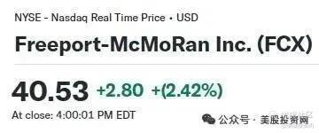 我们《美股投资网10月必买股》中看好的麦克莫兰铜金公司(FCX)今天再次稳步上涨2.49%。 $麦克莫兰铜金(FCX)$