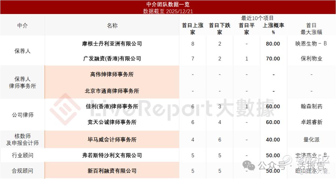 据**大数据统计,精锋医疗中介团队共计9家,其中保荐人2家,近10家保荐项目数据表现稳妥;公司律师共计2家,综合项目数据表现普通。整体而言中介团队历史数据表现中规中矩。