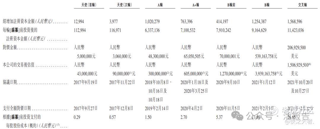 公司上市前经历了多轮融资,累计融资21.9亿元人民币。在2021年12月的交叉轮最新融资中,公司的投后估值约为106.1亿人民币。
