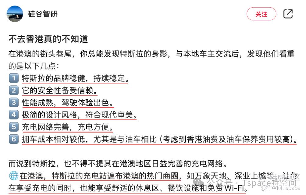 凭借强大性能与出色性价比兼备的产品优势,特斯拉在中国港澳地区保持着热销态势。网友@硅谷智研在与本地车主交流过程中了解到,车辆的安全性、可靠性以及出色的驾驶体验,是吸引用户选择特斯拉的关键因素。“特别是考虑到澳门油价高企,且燃油车养护成本普遍居高不下,特斯拉更低的用车及维保成本,让车辆展现出远超燃油车的吸引力。”