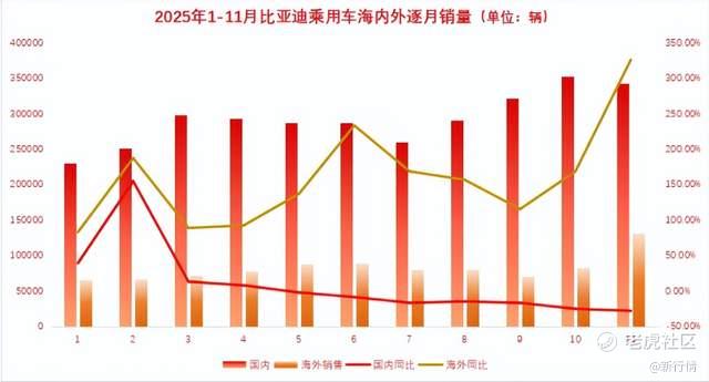 再看销量数据,今年1-11月,比亚迪乘用车累计销量413.06万辆,同比增长10.41%。