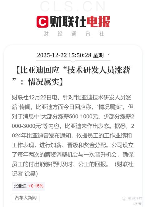 不过,对于网传的“大部分涨薪500-1000元、少部分涨薪2000-3000元”等内容,比亚迪未作出表态。