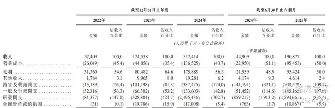招股书显示,2022年至2024年,智谱营收分别为5740万元、1.25亿元和3.12亿元,年均复合增长率超130%;2025年上半年营收进一步增至1.91亿元,较上年同期的4490万元同比激增325.39%。