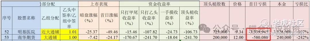 以最近的两只破发大王为例,明基医院顶头槌亏损300多万,亏损比(10倍杠杆)为107%;南华期货没有顶头槌,最高申购20万股,亏损58万,亏损比(10倍杠杆)为242%。都是需要被券商强制平仓的对象。