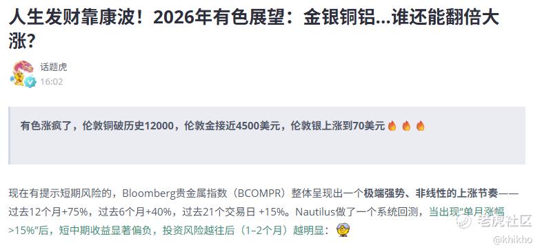 这波大宗商品上涨不是昙花一现,而更像是中期牛市的预备阶段。但近期节奏太快,局部确实需要一次技术性回调。黄金和白银的上涨趋势最扎实,工业金属更多是交易性行情。一句话总结,黄金,白银带头冲锋,工业金属跟涨,原油在“小步快跑”。