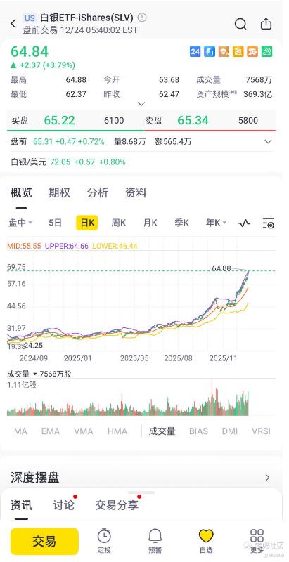 我也买了一年后到期的 $白银ETF-iShares(SLV)$ Leaps Call,是打算用小量的资金去抓住这一波上行的红利。年头才20多块一股,我看了很久没有进场,现在60多一股,我羞涩的荷包已经买不了很多股,智能买Leaps Call 了。[捂脸]