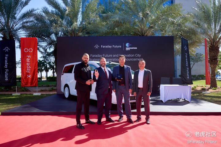 拉斯海马创新城CEO Paul Dawalibi,FF中东负责人 Tin Mok,以及 FF中东用户生态与政府事务负责人 Morris Gao 等高管及嘉宾出席了签约仪式。签约仪式后,公司举行了共创交付仪式,向拉斯海马创新城交付 FX Super One。