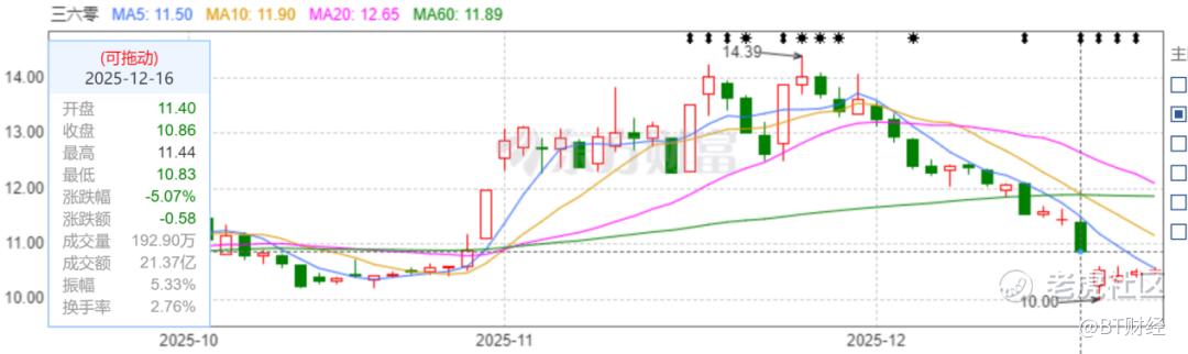 尽管360扭亏为盈,只是相比此前2016年至2020年年利润动辄几十亿元相比,如今的业绩表现难让投资者满意。第三季度的扭亏为盈也验证了周鸿祎此前的战略,“AI+安全”政企赛道的商业化可行性,为后续盈利可持续性奠定基础。扭亏消息推动股价短期走强,11月25日股价一度来到14.39元的高点,提振了投资者对公司转型的信心。