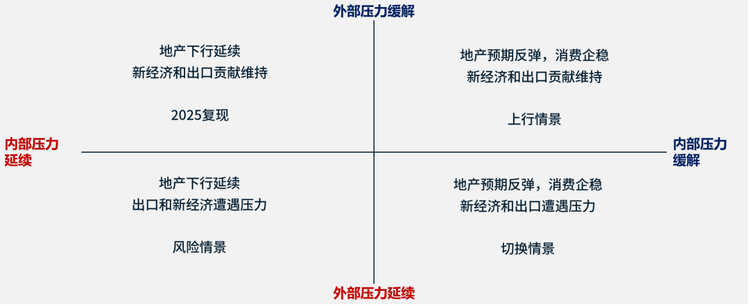 在经济部分,当下全球经济都处于分化结构当中,与AI相关的不错,与AI不相关的不行。2026年可能的情景无非是下面四种可能。