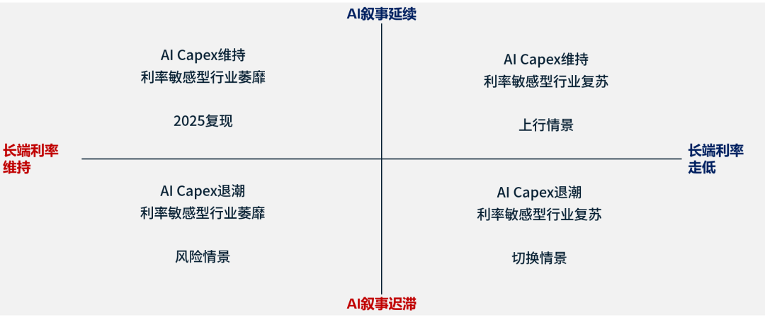- 左上角是2025年的延续,我觉得在2026年H1概率更高,但随着时间推移,我觉得K型的经济自身并不稳定。左上角是一个趋势的延续,但我并不指望到2026年年底,所有2025年的明星品种依然闪耀一年。