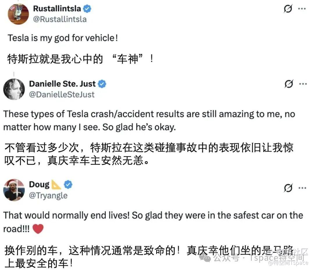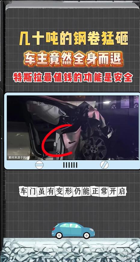 网友观察事故现场表示,这相当于是特斯拉进行了一次“正面碰撞”和“钻底碰撞”的实战,其中“刚柔并济”钢铝混合车身结构发挥了关键作用。