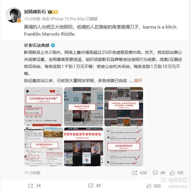 而法务部,似乎如今也成了这些行业公司的标配,近日,影石法务部也是火力全开,连发多条内容称影石遭遇了黑公关。