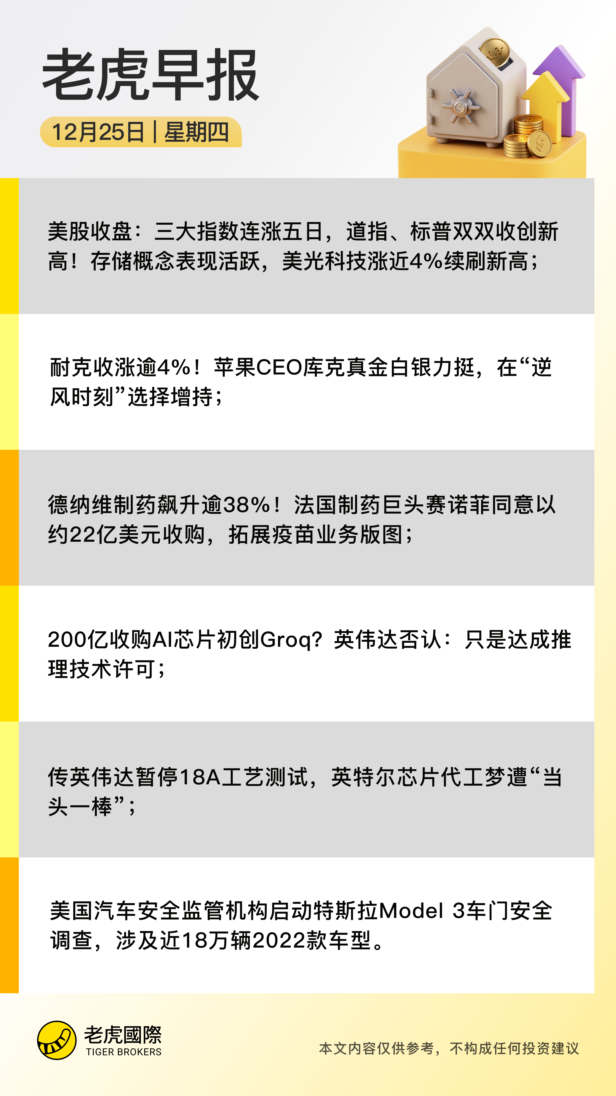💹【12月25日】圣诞行情延续,美股三大指数五连涨!