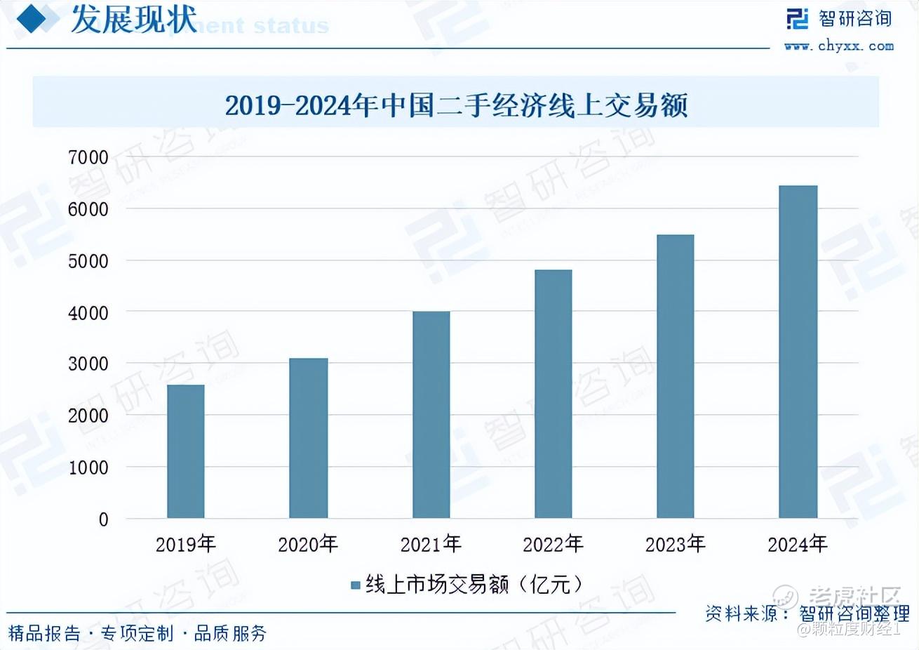 智研咨询发布的数据显示,二手经济线上交易额由2019年的2597亿元增长至2024年的6450亿元。