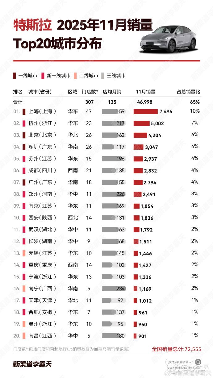 十七城销量破千,其中上海更是突破7,000+ $特斯拉(TSLA)$